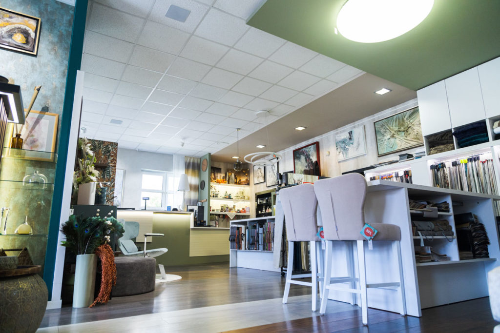 Cieľom je tiež vzdelávať ľudí v oblasti interiérového dizajnu a poskytovať im inšpiráciu. Samozrejme, predajňa slúži ako showroom pre zákazníkov, ktorí si môžu prezrieť všetky krásne materiály, textílie, tapety, dekorácie a rôzne katalógy.