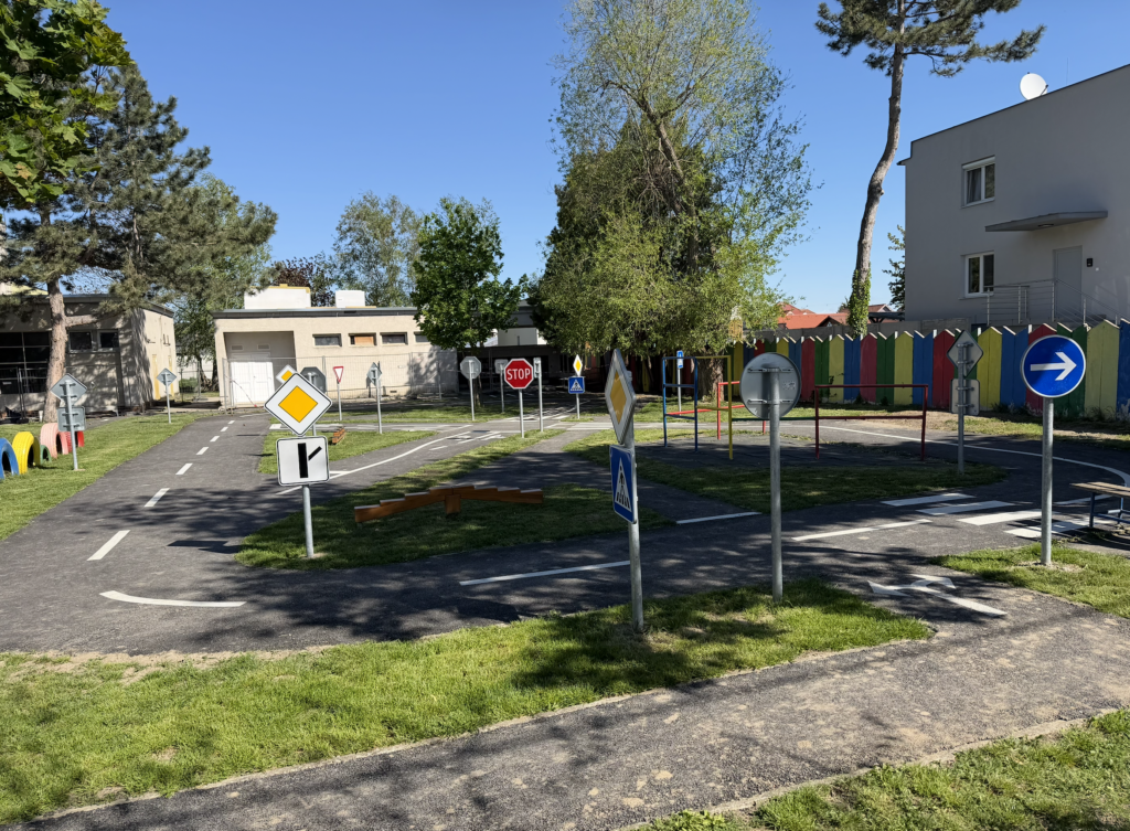 Aj tentokrát realizáciu zabezpečila spoločnosť Današ Group s.r.o. z Veľkého Zálužia. Dopravné cestičky dostali nový asfaltový povrch a pribudlo realistické dopravné značenie, vďaka ktorému si deti môžu prirodzenou a hravou formou osvojovať základné pravidlá bezpečnosti na cestách.
